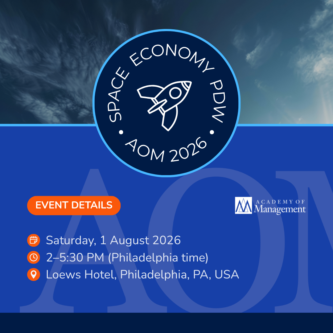 Step into the flagship session of AOM 2026! The Space Economy PDW is where leading scholars and space industry pioneers unite. Join us to shape the future of management research in one of today's fastest-growing domains. With a 75-member organizing team and co-sponsorship from 22 divisions, the PDW features keynotes, academic and industry panels, and interactive roundtables. Register now; spaces fill quickly!